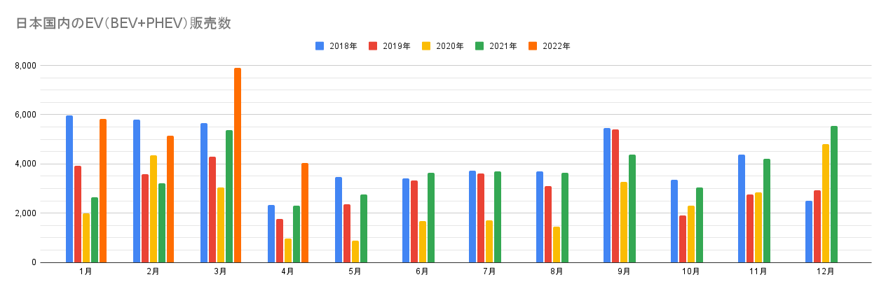 ※この記事は2022年4月の情報です。最新情報はこちらから:EV販売台数の記事一覧