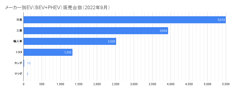 ※この記事は2022年9月の情報です。最新情報はこちらから:EV販売台数の記事一覧(翌月下旬更新)