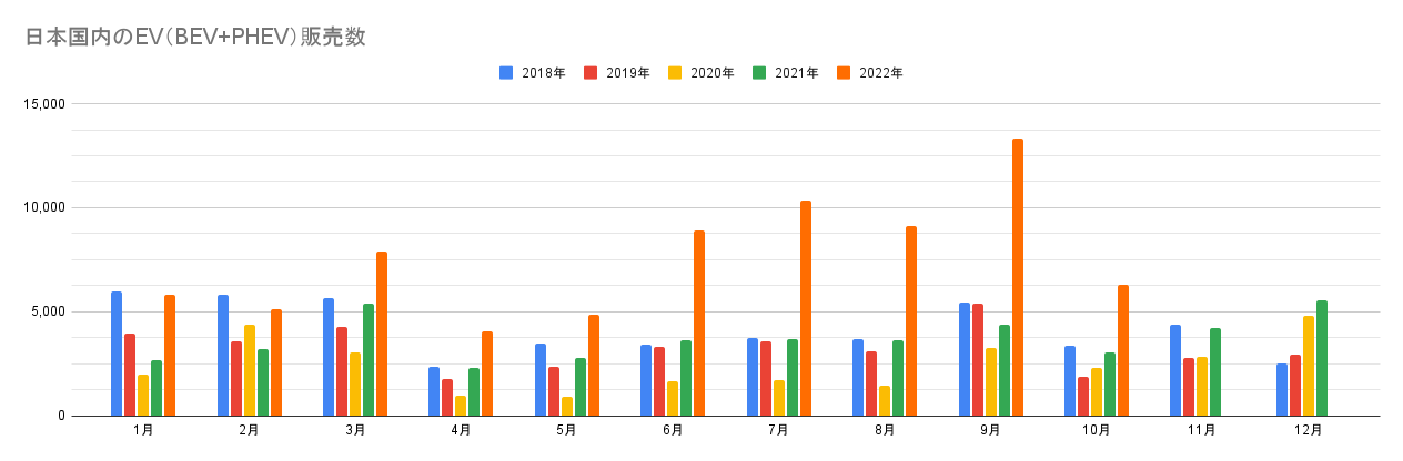 ※この記事は2022年10月の情報です。最新情報はこちらから:EV販売台数の記事一覧(翌月下旬更新)