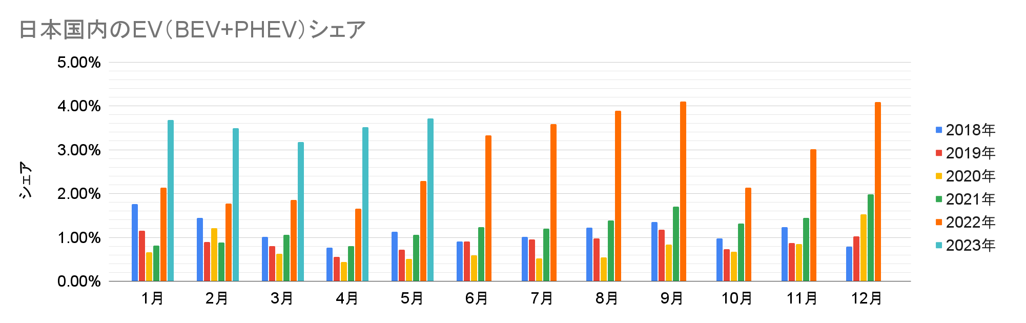 【日本国内のEV販売】2023年5月のEVシェアは3.7%、前年から1.6倍以上の成長で2023年として最高に!
