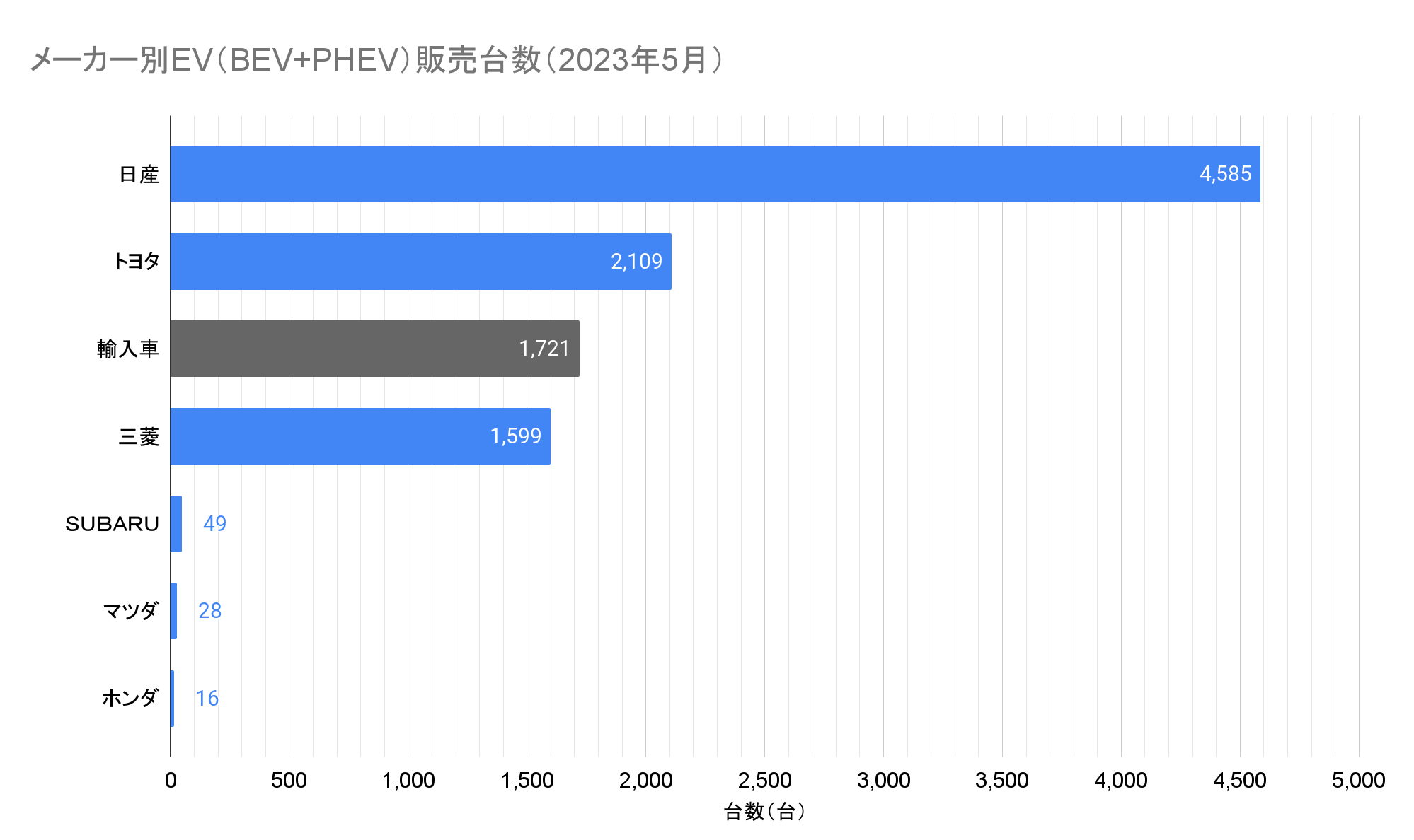 ※この記事は2023年5月の情報です。最新情報はこちらから:EV販売台数の記事一覧(翌月中旬頃更新)