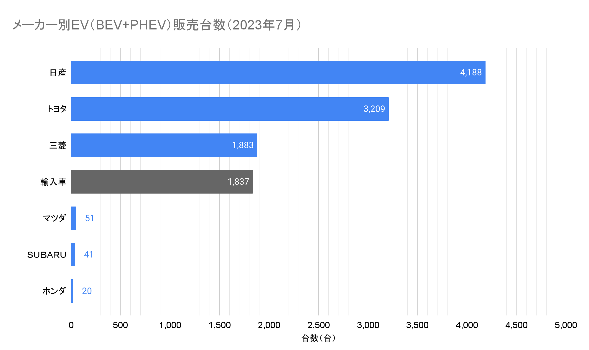 ※この記事は2023年7月の情報です。最新情報はこちらから:EV販売台数の記事一覧(翌月中旬頃更新)