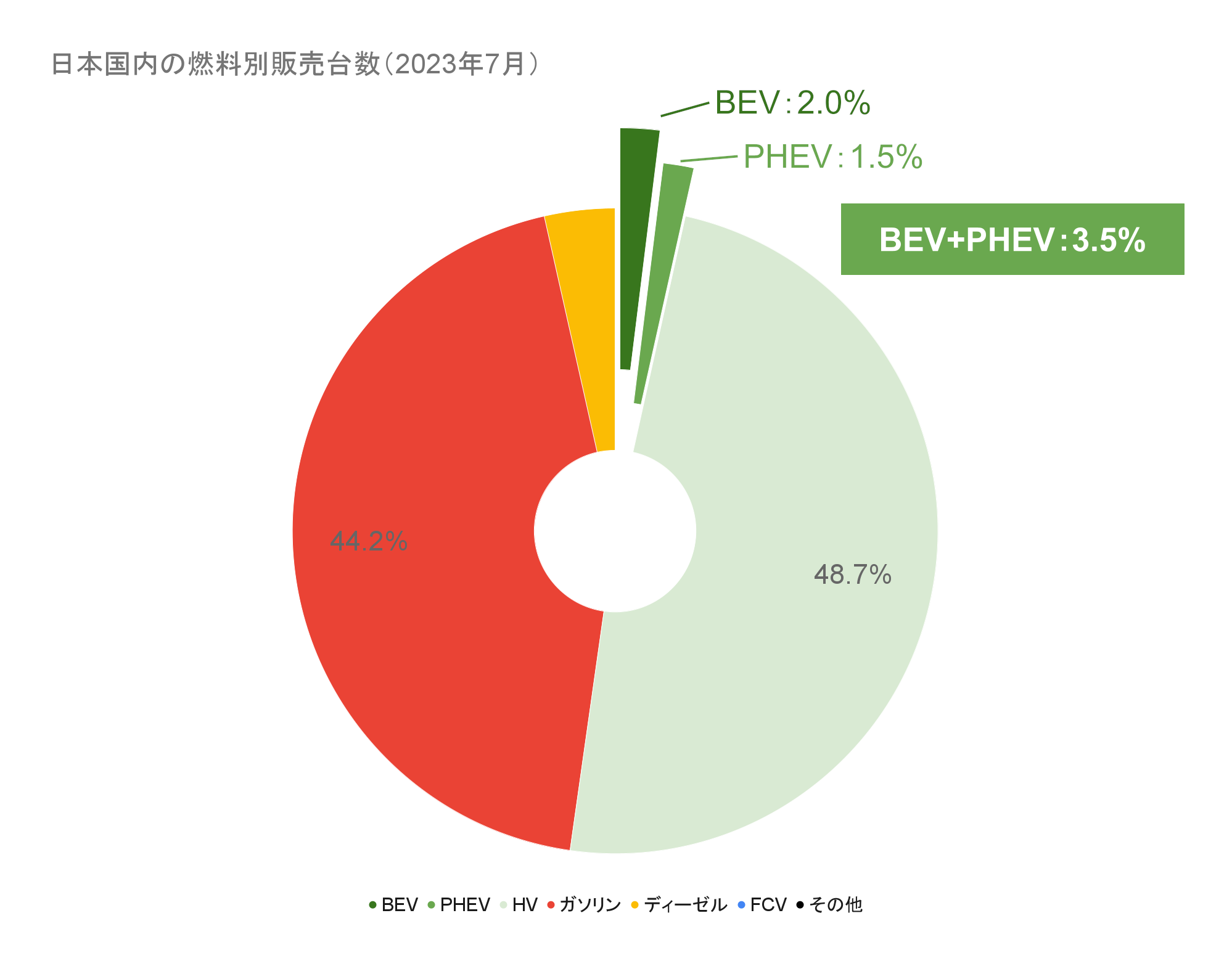 日本国内の燃料別販売台数(2023年7月)(クリックで拡大)