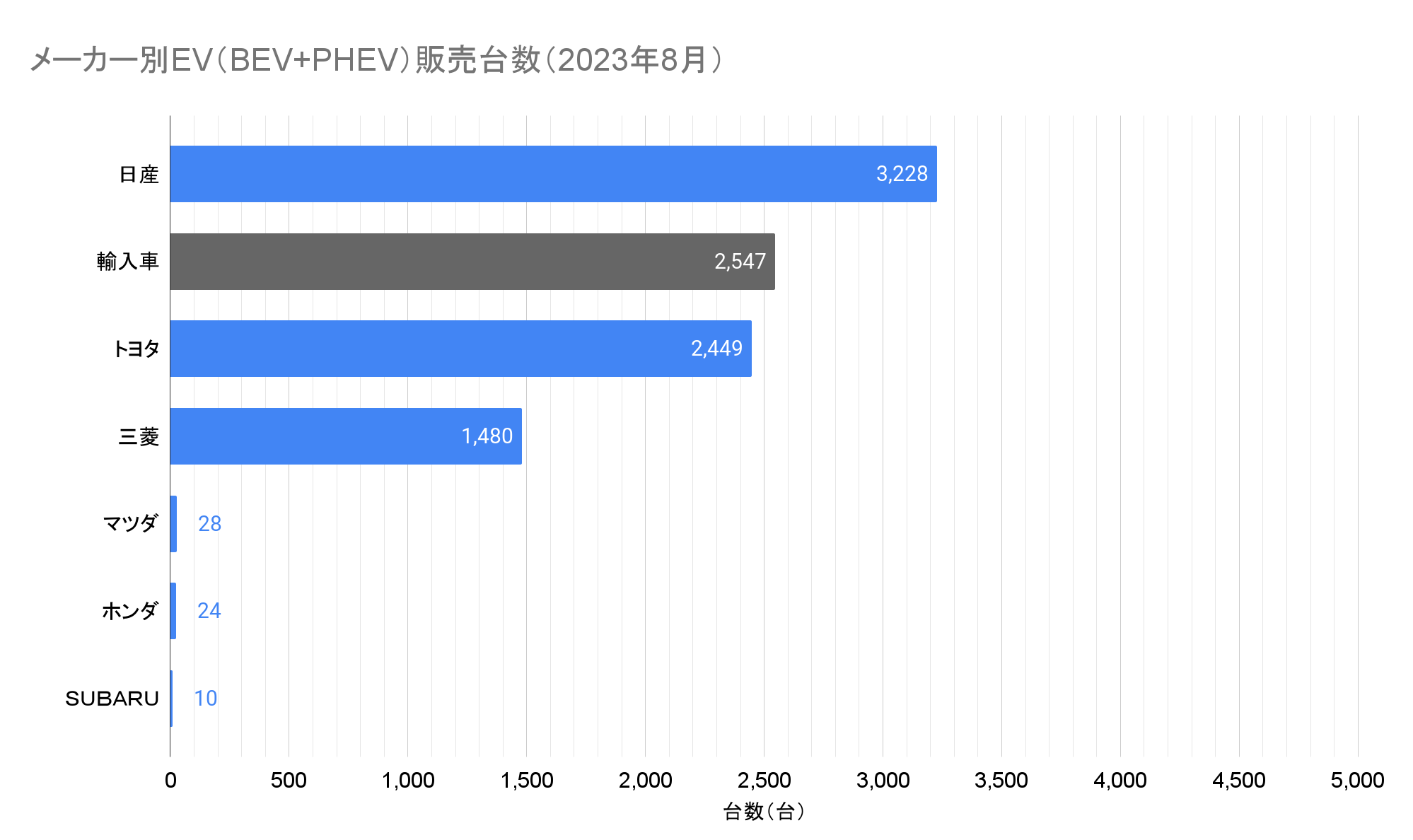 ※この記事は2023年8月の情報です。最新情報はこちらから:EV販売台数の記事一覧(翌月中旬頃更新)