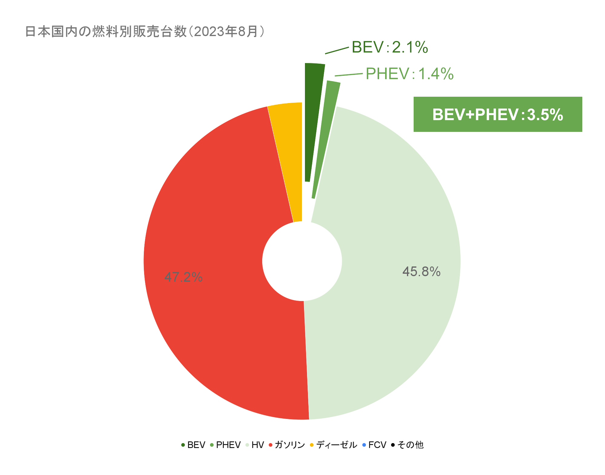 【日本国内のEV販売】2023年8月のEVシェアは3.5%、前月に続き台数が増加しシェアは減少!