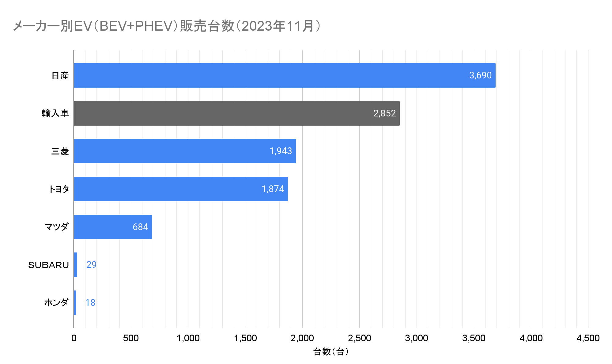 ※この記事は2023年11月の情報です。最新情報はこちらから:EV販売台数の記事一覧(翌月中旬頃更新)