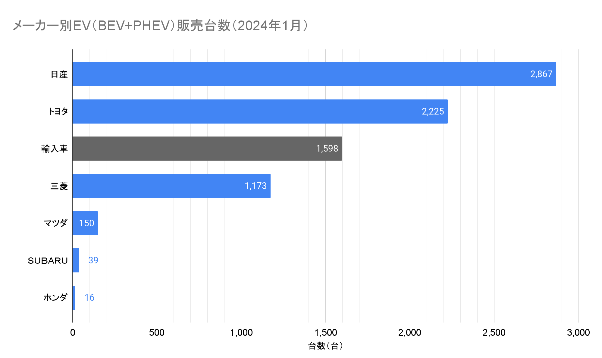 ※この記事は2024年1月の情報です。最新情報はこちらから:EV販売台数の記事一覧(翌月中旬頃更新)