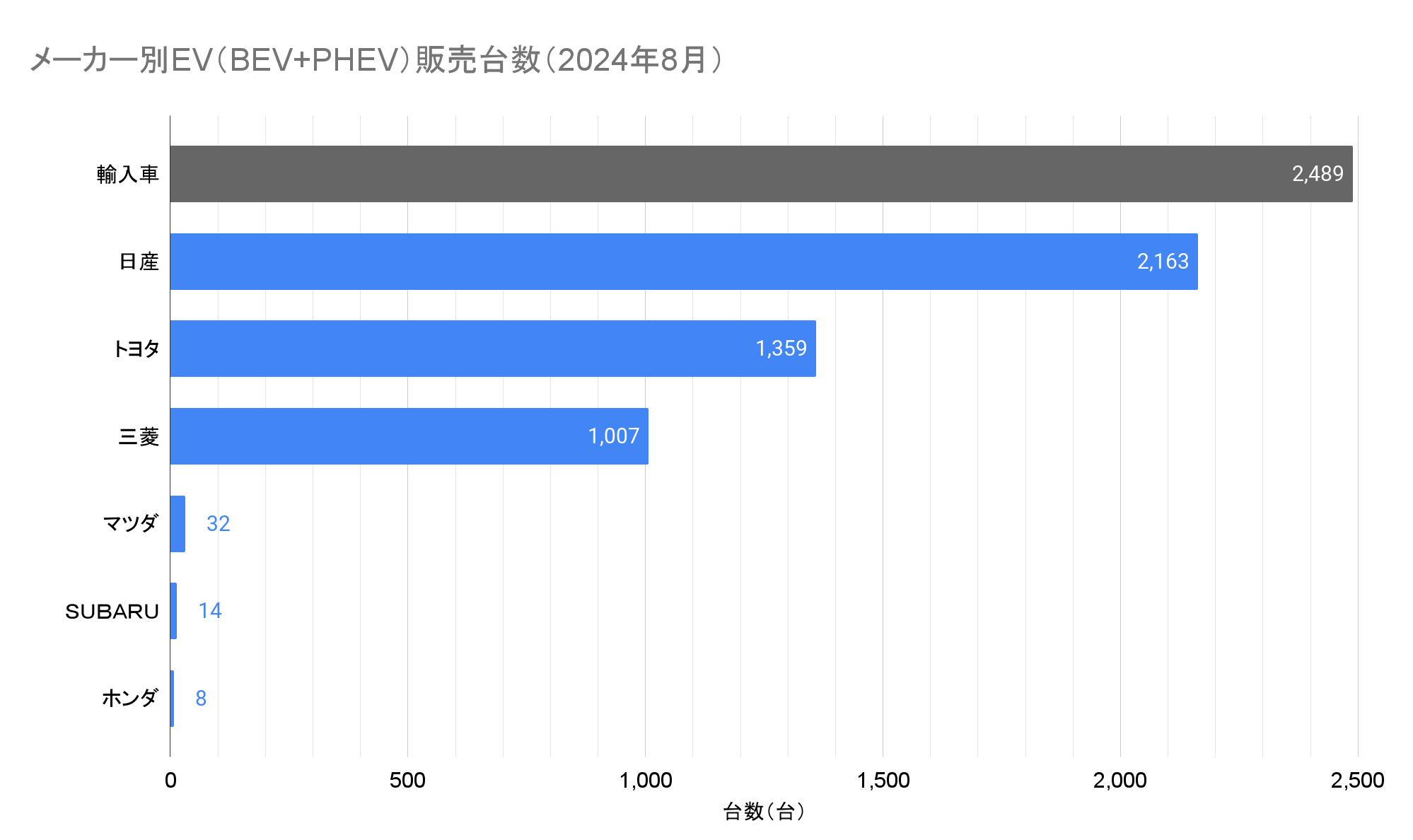 ※この記事は2024年8月の情報です。最新情報はこちらから:EV販売台数の記事一覧(翌月中旬頃更新)