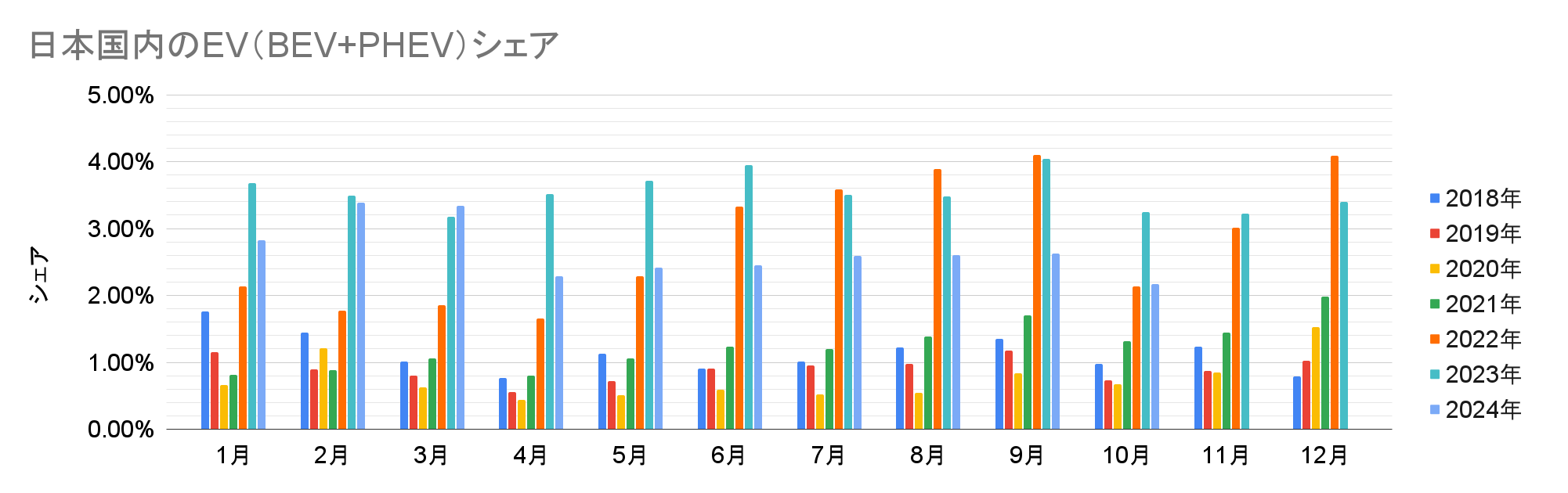 【日本国内のEV販売】2024年10月のEVシェアは2.2%、印象操作とともに減少が継続