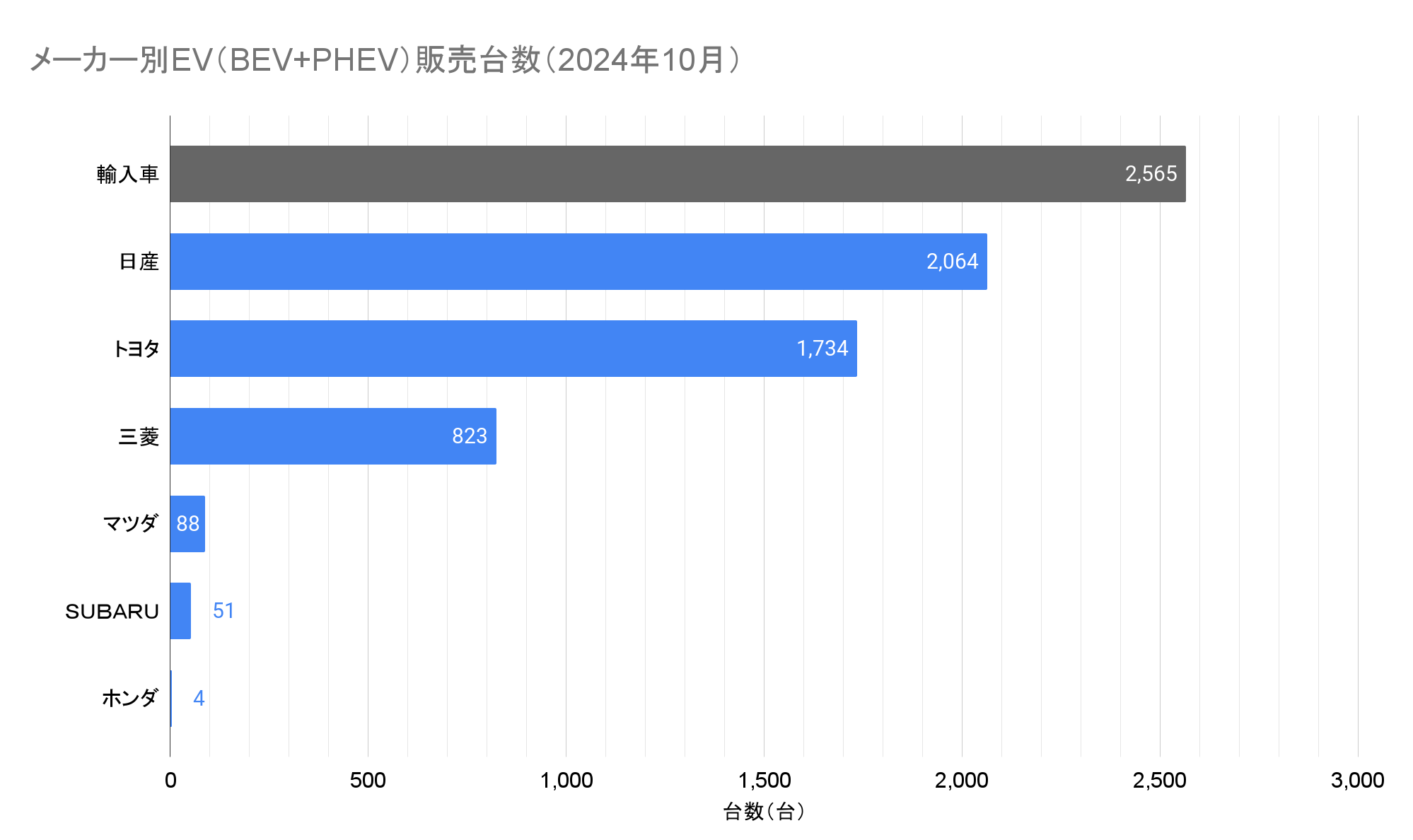 ※この記事は2024年10月の情報です。最新情報はこちらから:EV販売台数の記事一覧(翌月中旬頃更新)