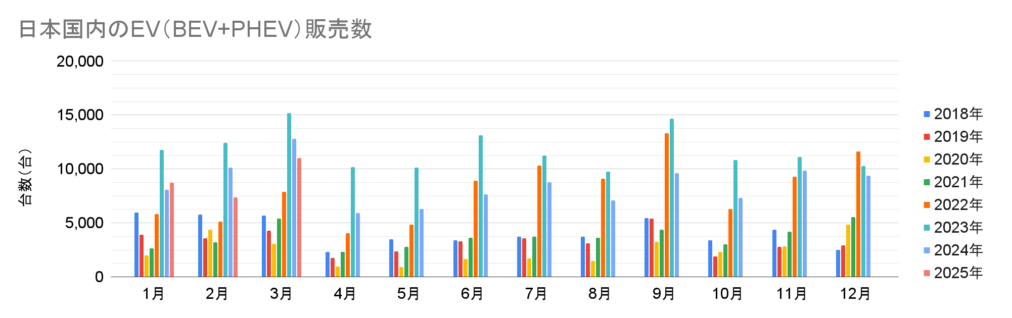 ※この記事は2025年3月の情報です。最新情報はこちらから:EV販売台数の記事一覧(翌月中旬頃更新)
