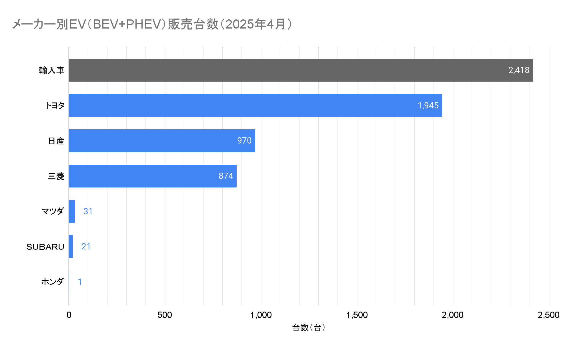 ※この記事は2025年4月の情報です。最新情報はこちらから:EV販売台数の記事一覧(翌月中旬頃更新)
