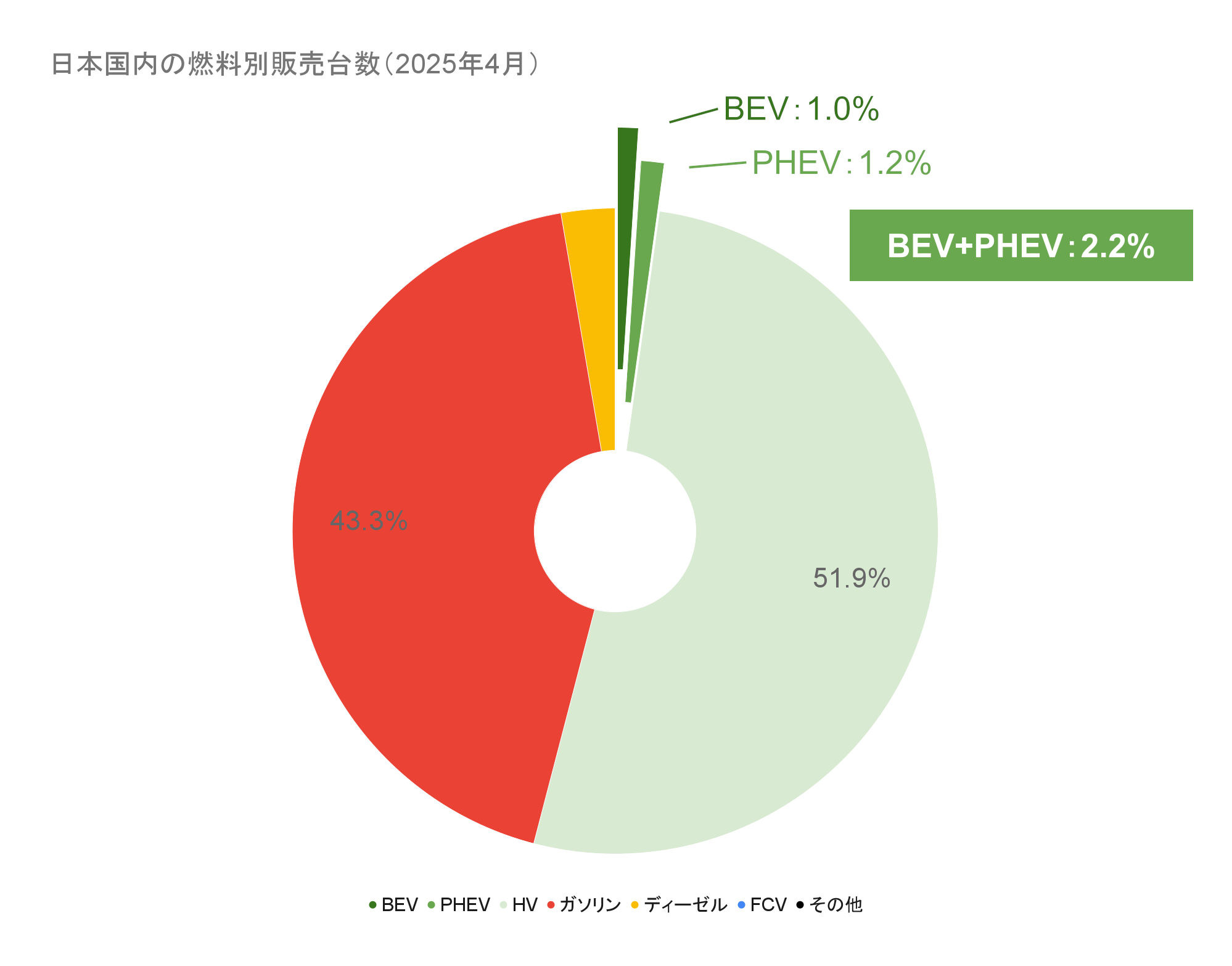 日本国内の燃料別販売台数(2025年4月)(クリックで拡大)