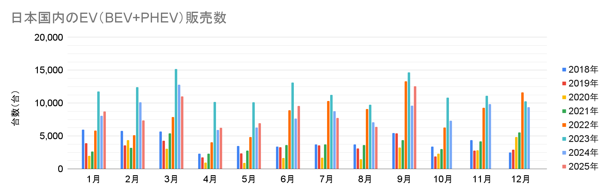 ※この記事は2025年9月の情報です。最新情報はこちらから:EV販売台数の記事一覧(翌月中旬頃更新)